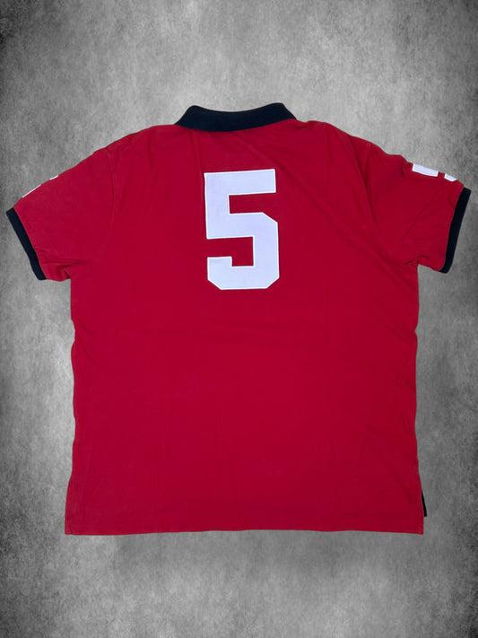 The Polo Ralph Lauren Big Pony City Polo collection represents various cities. These polos are identifiable by the bold spell-out on the front and the city’s national flag on the embroidered chest crest. They always feature the number 2 or 3 on the sleeves, with the same number displayed on the back, making them distinctive and collectible.