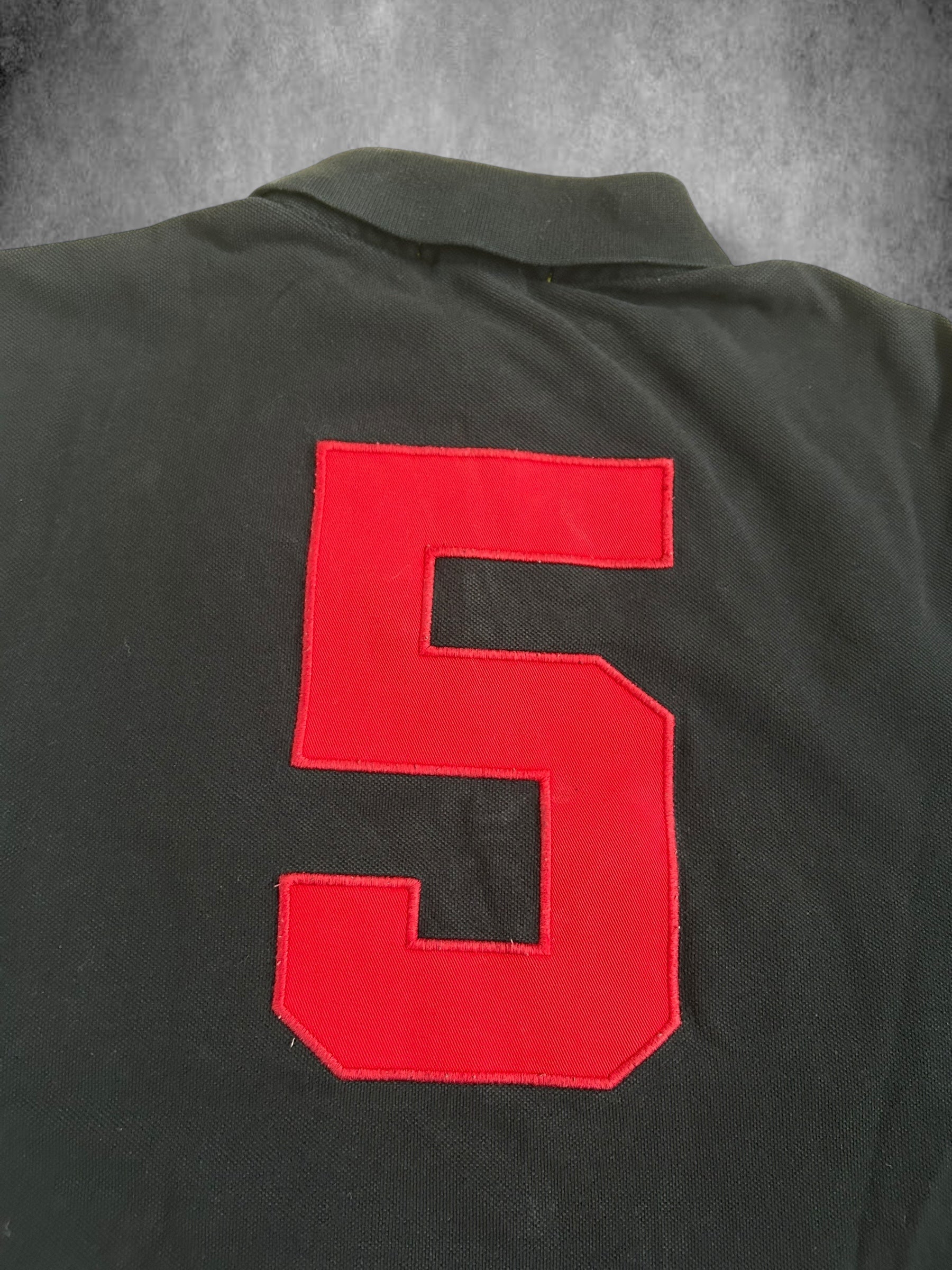 Made from 100% high-quality cotton, it features the Big Pony logo, bold "MUNICH" lettering, an embroidered Munich team crest, and the number 5 on both sleeves—a signature detail in Ralph Lauren’s polo designs. No longer in production, making it a rare and collectible item for Ralph Lauren enthusiasts.