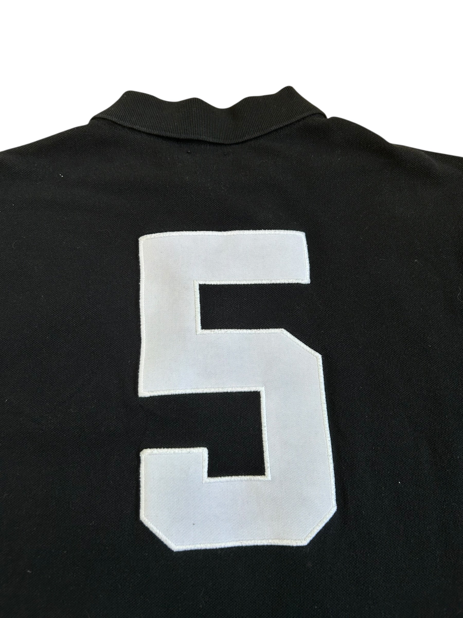 Made from 100% high-quality cotton, it features the Big Pony logo, bold "NEW YORK" lettering, an embroidered New York team crest, and the number 5on both sleeves—a signature detail in Ralph Lauren’s polo designs. No longer in production, making it a rare and collectible item for Ralph Lauren enthusiasts.