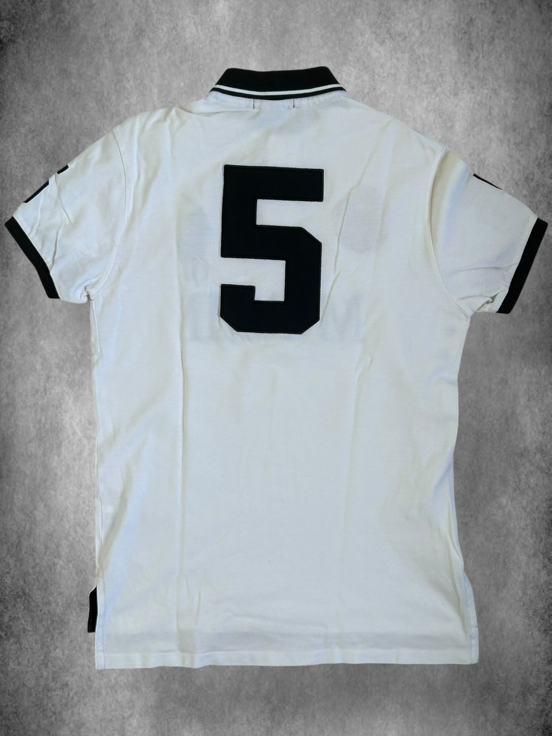 Made from 100% high-quality cotton, it features the iconic Big Pony logo, bold "MIAMI" lettering, an embroidered USA team crest, and the number 5 on both sleeves—representing a classic player number in Ralph Lauren’s polo designs. No longer in production, making it a rare and collectible item for Ralph Lauren enthusiasts.