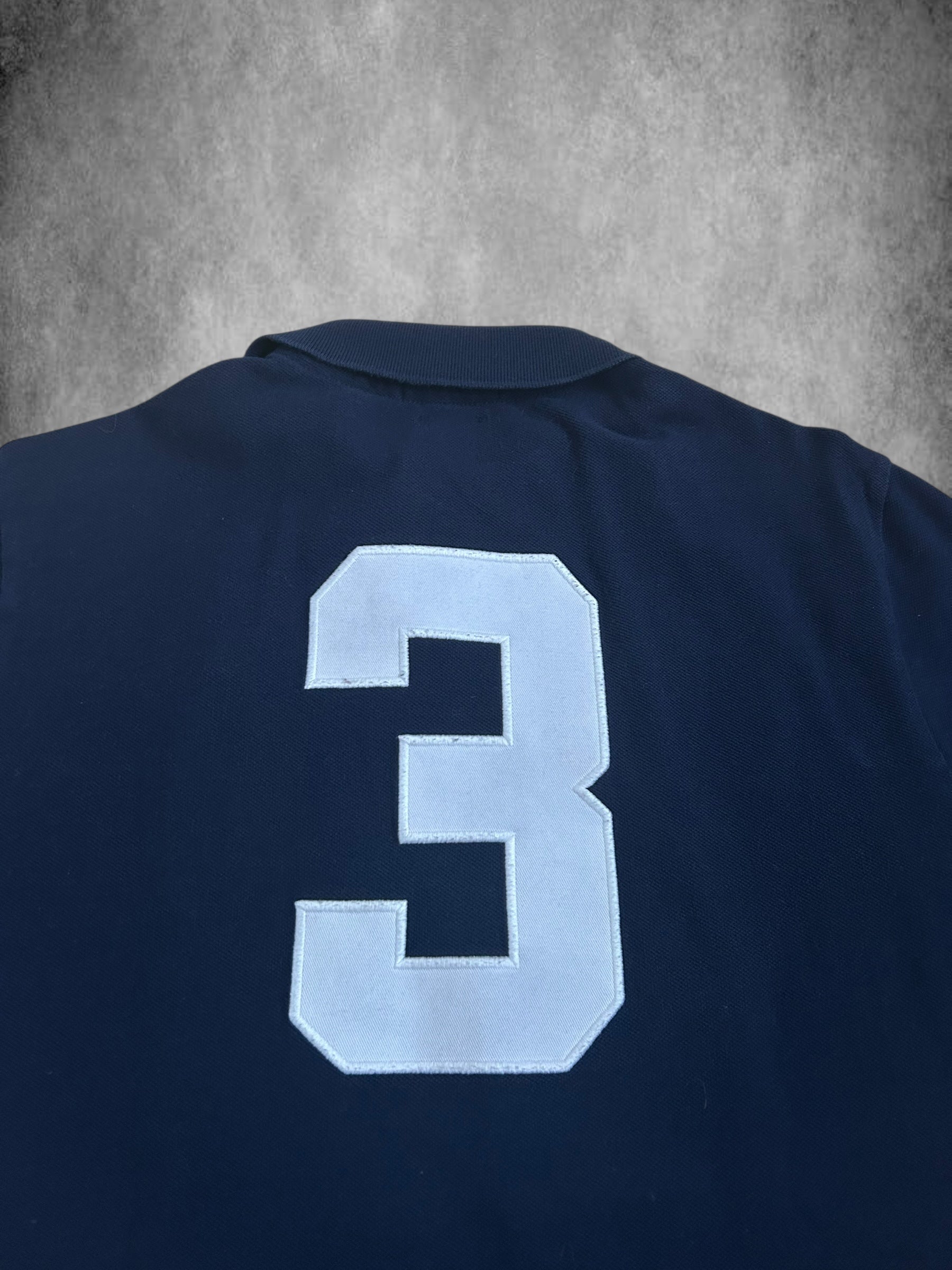 Made from 100% high-quality cotton, it features the Big Pony logo, bold "LOS ANGELES" lettering, an embroidered USA crest emblem, and the number 3 on both sleeves—a signature detail in Ralph Lauren’s polo designs. No longer in production, making it a rare and collectible item for Ralph Lauren enthusiasts.