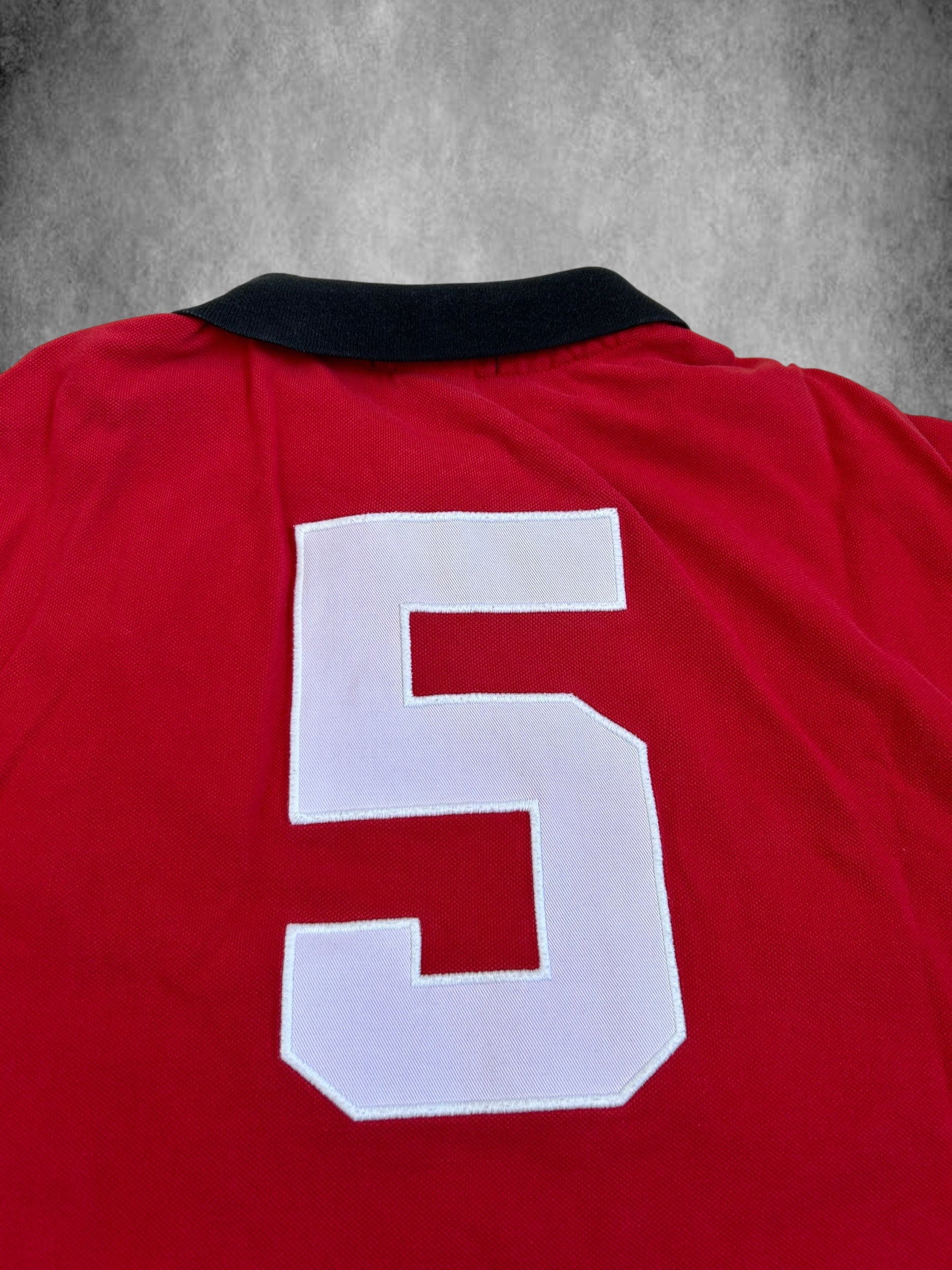 Made from 100% high-quality cotton, it features the Big Pony logo, bold "MILAN" lettering, an embroidered Milan team crest, and the number 5 on both sleeves—a signature detail in Ralph Lauren’s polo designs. No longer in production, making it a rare and collectible item for Ralph Lauren enthusiasts.