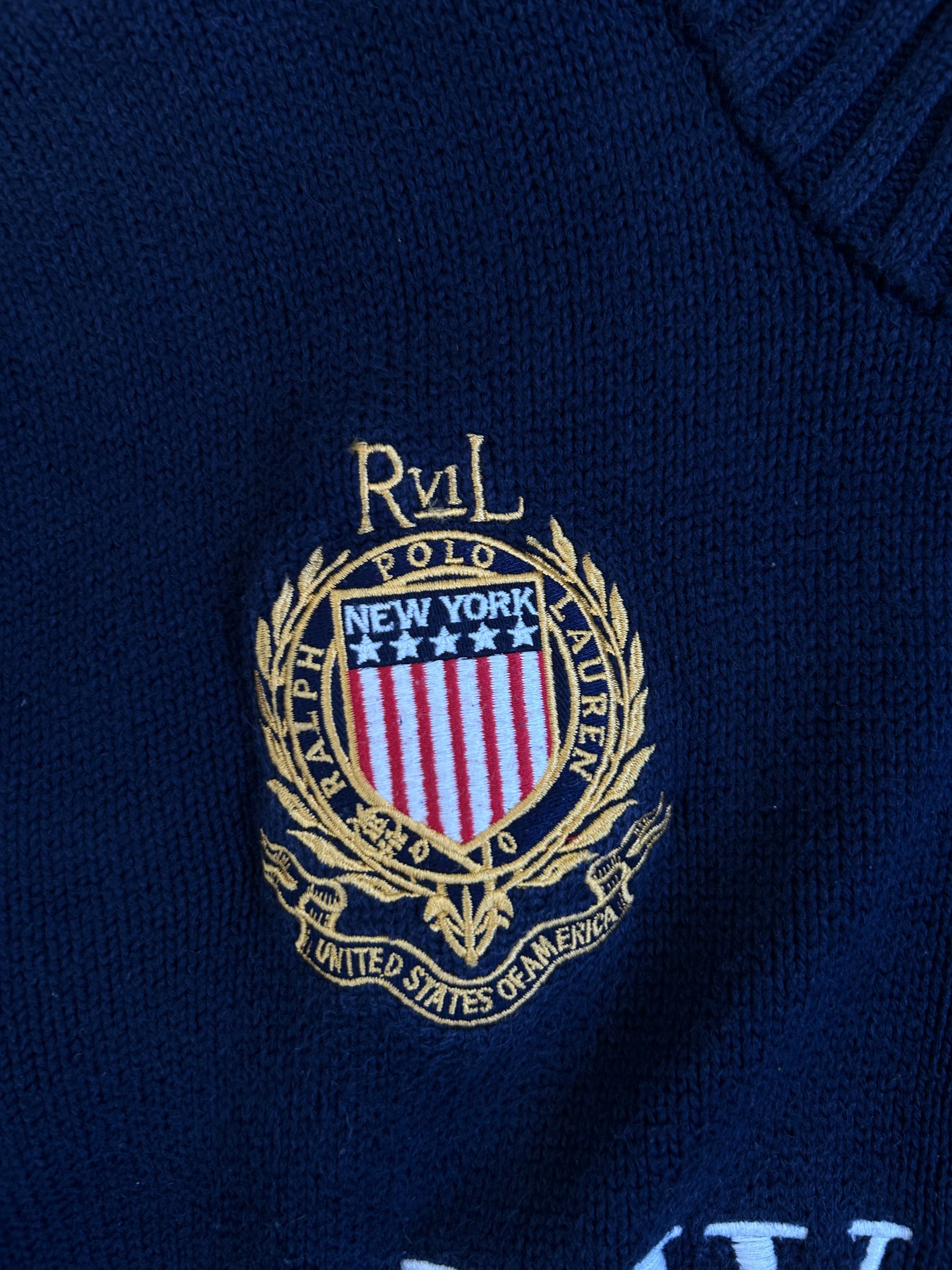 This Ralph Lauren New York Big Pony sweater is a standout piece from the Polo Ralph Lauren International Team Collection, celebrating New York’s rich sporting heritage. Originally released in the 2010s, this polo was available for a limited time at Ralph Lauren stores and select retailers.