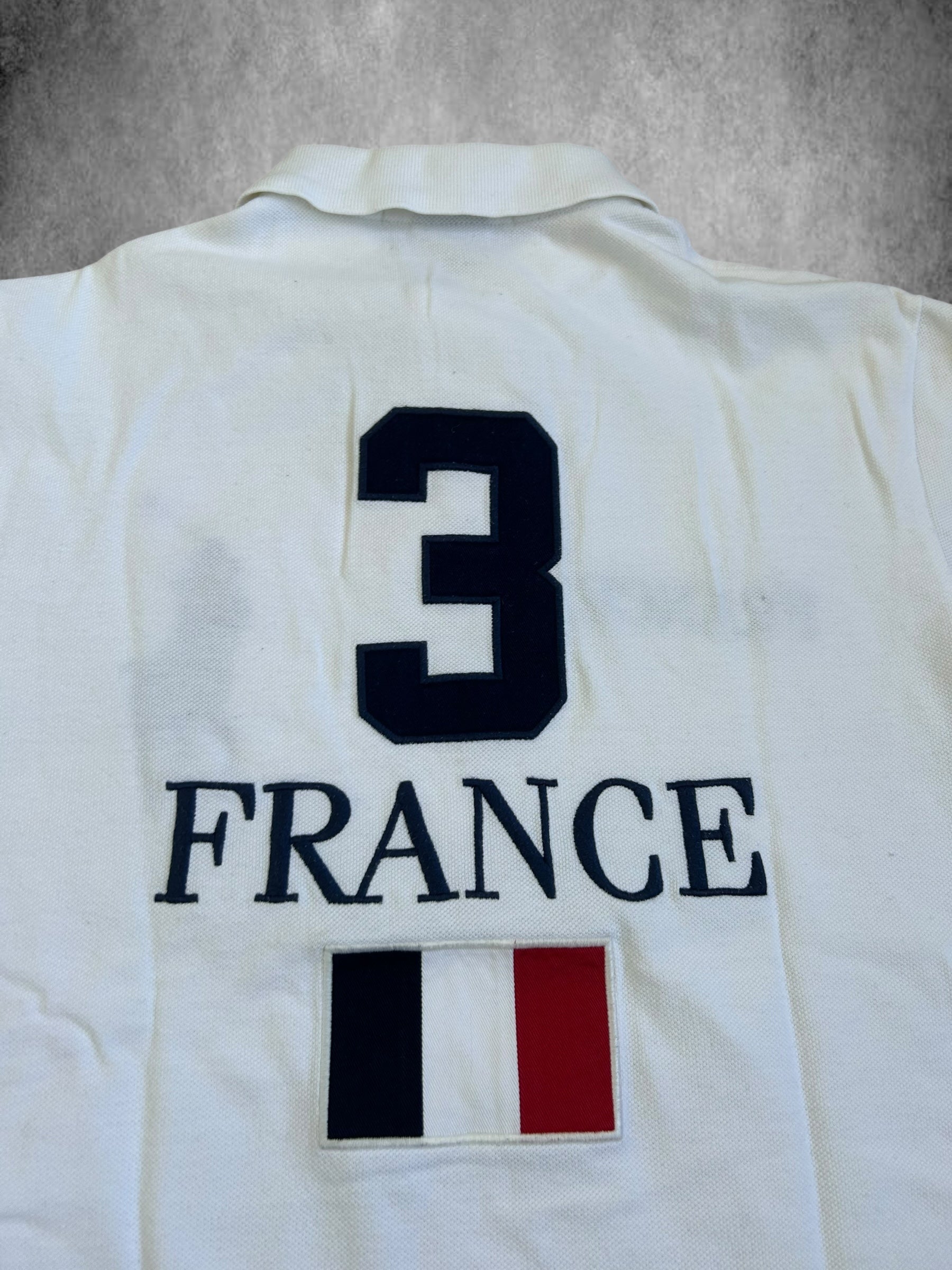 Made from 100% high-quality cotton, it features the Big Pony logo, bold "FRANCE" lettering, an embroidered France flag patch, and the number 3 on the sleeve—a signature detail in Ralph Lauren’s polo designs. No longer in production, making it a rare and collectible item for Ralph Lauren enthusiasts.