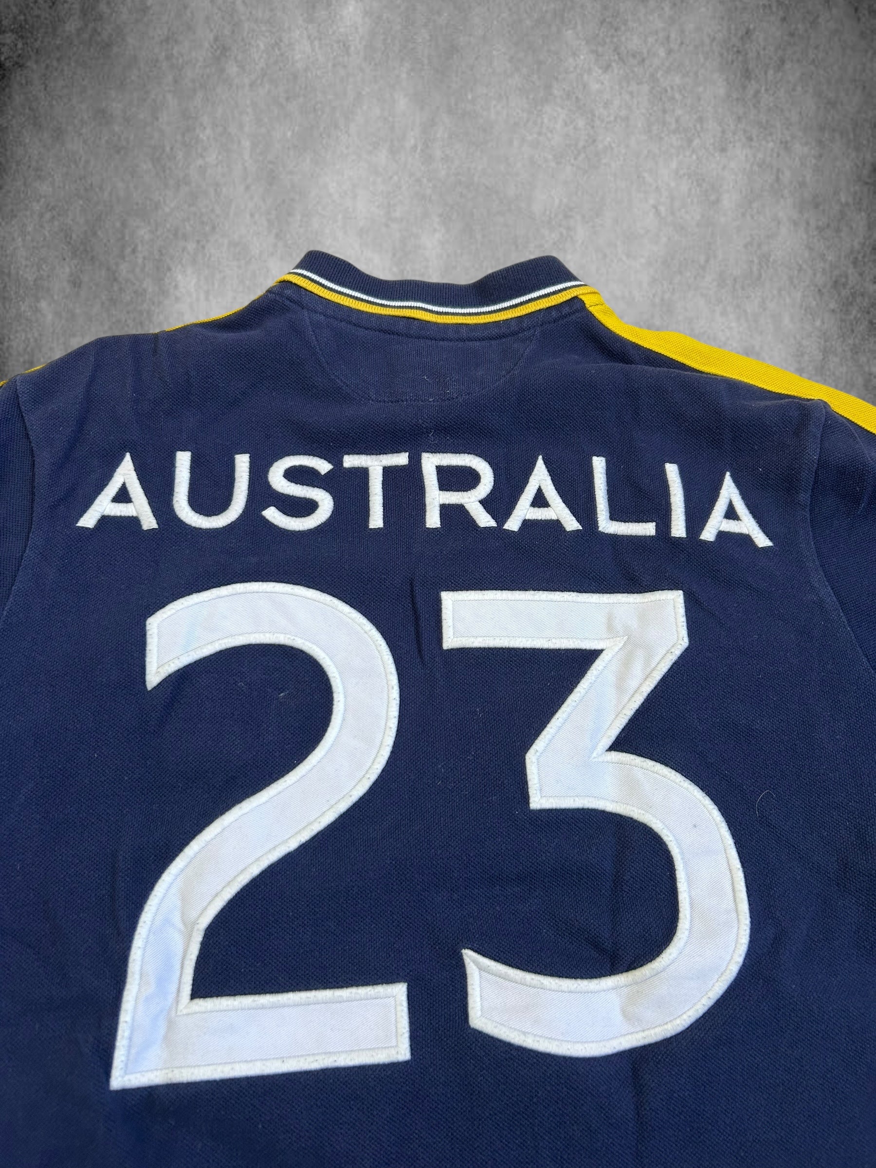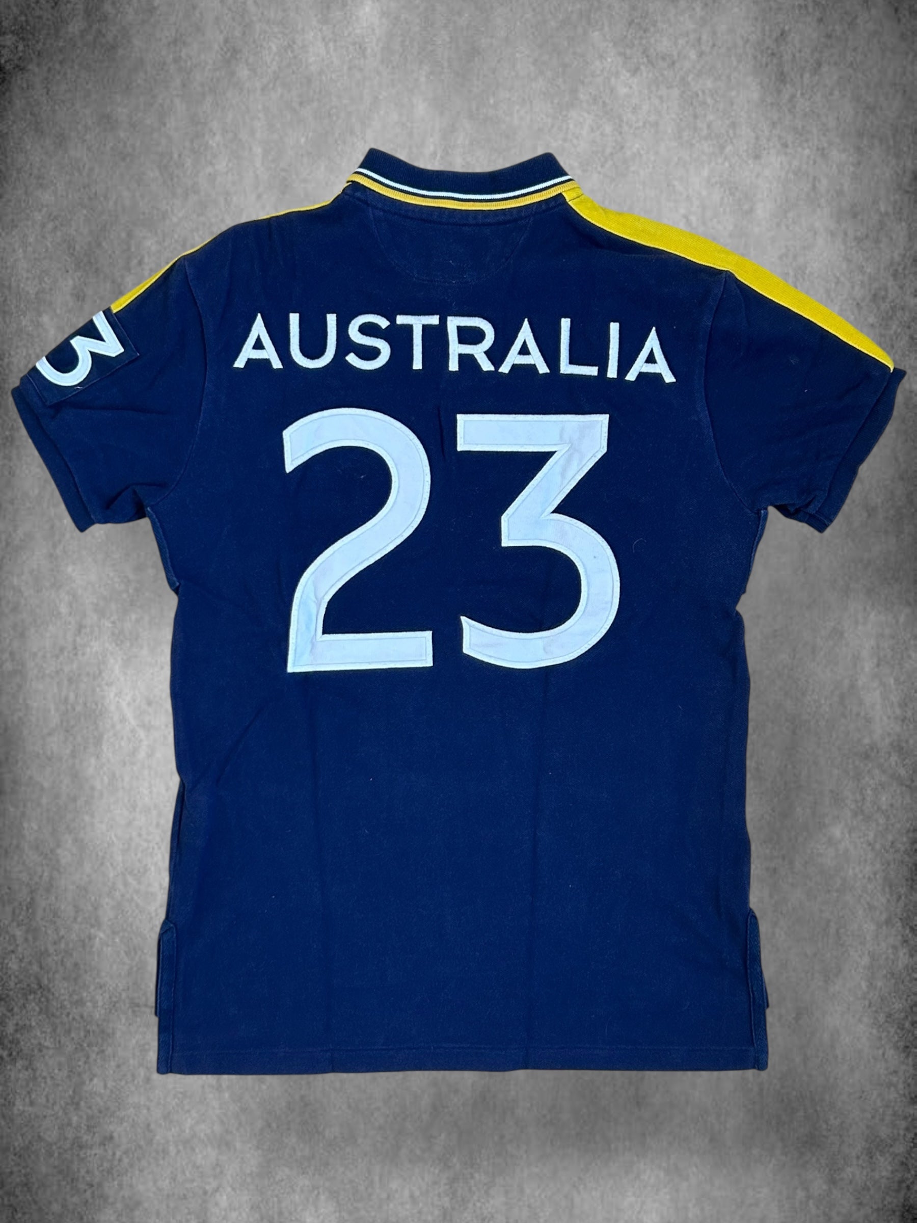 Made from 100% high-quality cotton, it features the Big Pony logo, bold "23" lettering, an embroidered Australian badge, and the number 23 on the sleeve—a signature detail in Ralph Lauren’s polo designs. No longer in production, making it a rare and collectible item for Ralph Lauren enthusiasts.