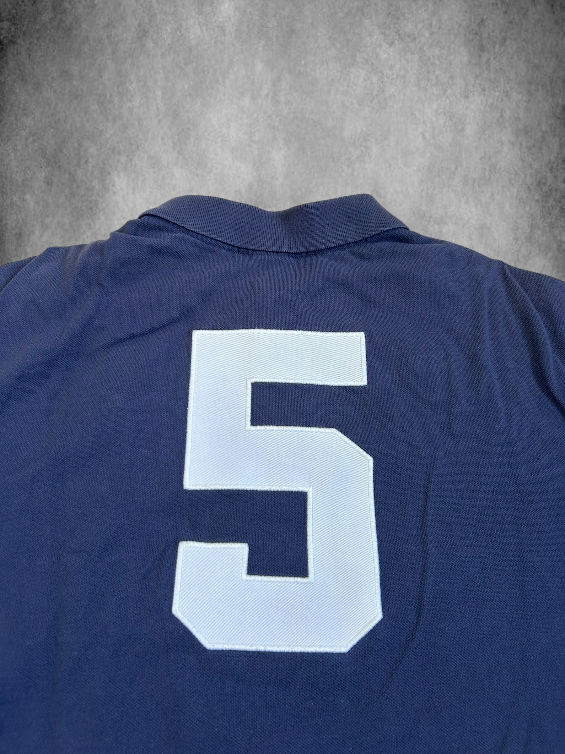 Made from 100% high-quality cotton, it features the Big Pony logo, bold "NEW YORK" lettering, an embroidered New York team crest, and the number 5 on both sleeves—a signature detail in Ralph Lauren’s polo designs. No longer in production, making it a rare and collectible item for Ralph Lauren enthusiasts.