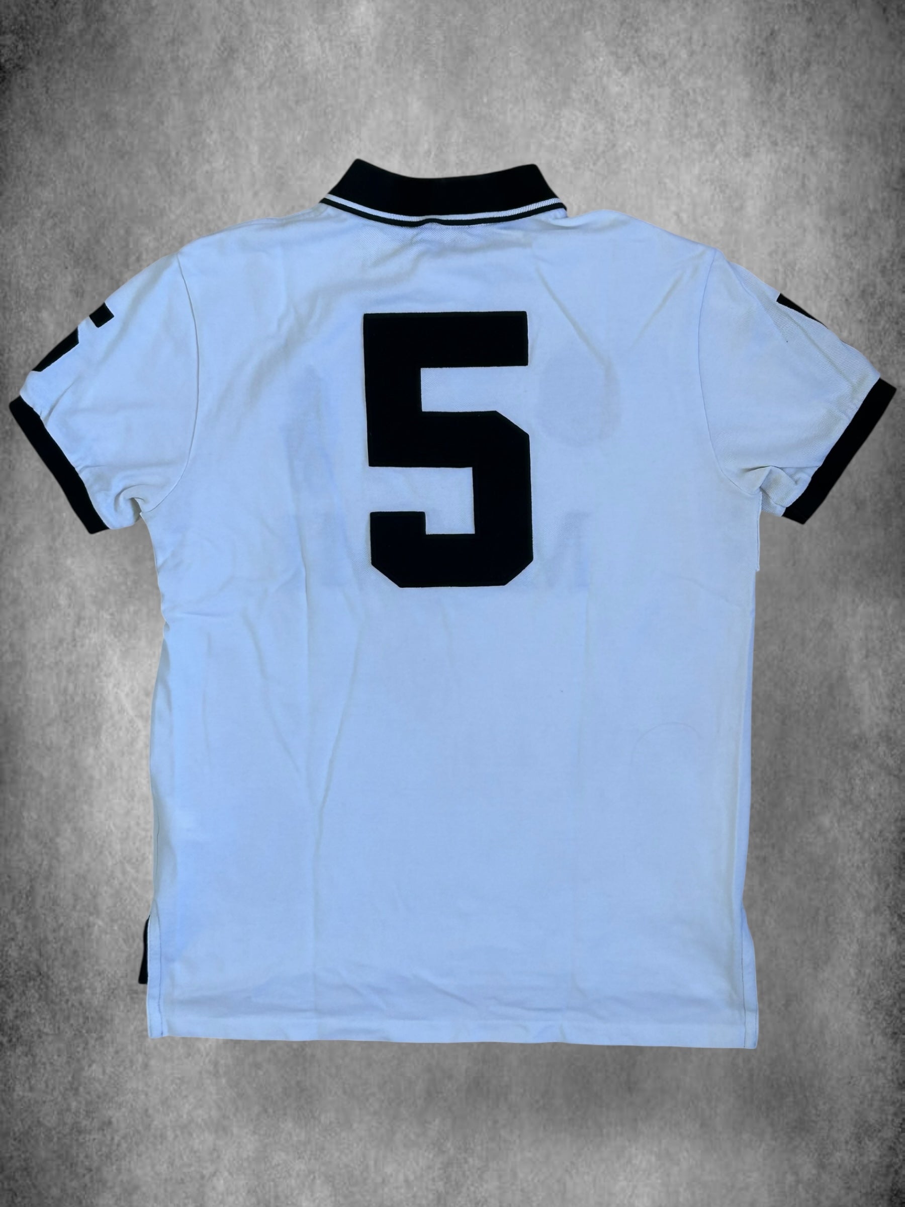 Made from 100% high-quality cotton, it features the iconic Big Pony logo, bold "MIAMI" lettering, an embroidered USA team crest, and the number 5 on both sleeves—representing a classic player number in Ralph Lauren’s polo designs. No longer in production, making it a rare and collectible item for Ralph Lauren enthusiasts.