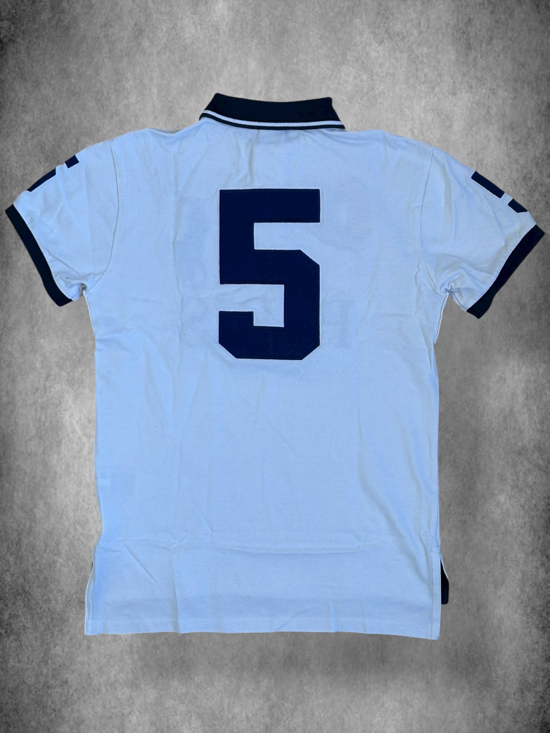 Made from 100% high-quality cotton, it features the Big Pony logo, bold "PARIS" lettering, an embroidered France crest, and the number 5 on both sleeves—a signature detail in Ralph Lauren’s polo designs. No longer in production, making it a rare and collectible item for Ralph Lauren enthusiasts.