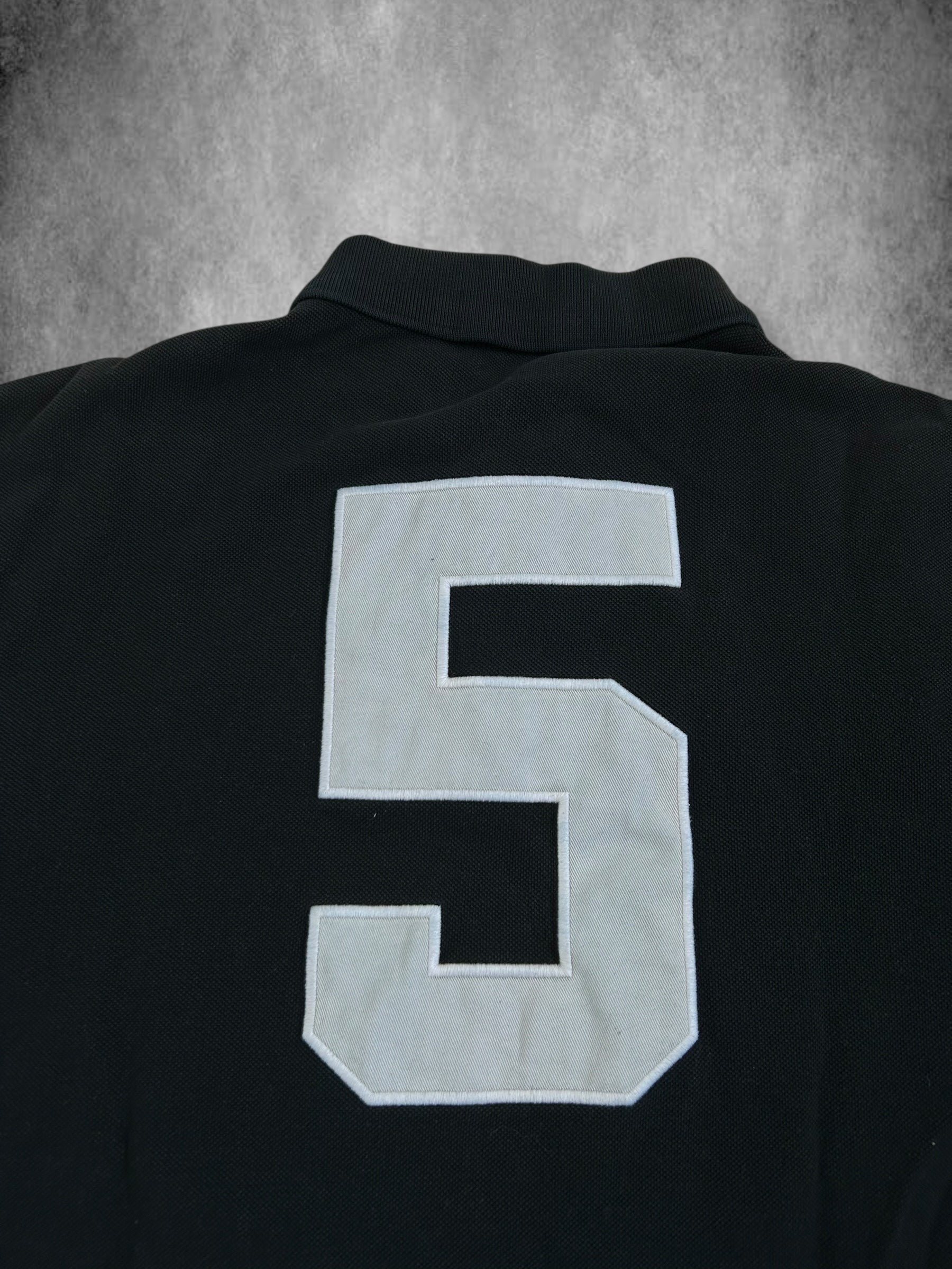 Made from 100% high-quality cotton, it features the Big Pony logo, bold "NEW YORK" lettering, an embroidered New York team crest, and the number 5 on both sleeves—a signature detail in Ralph Lauren’s polo designs. No longer in production, making it a rare and collectible item for Ralph Lauren enthusiasts.